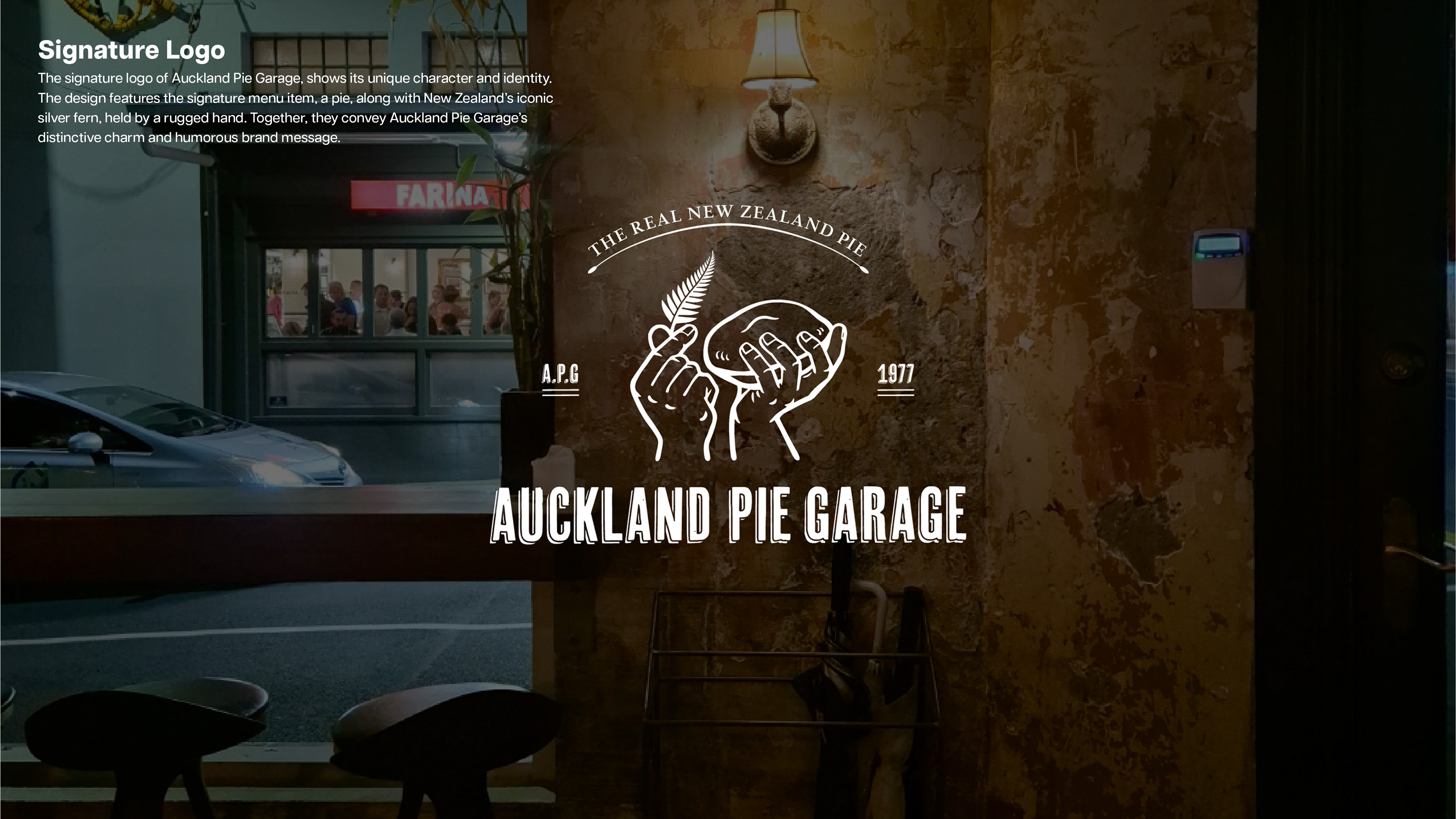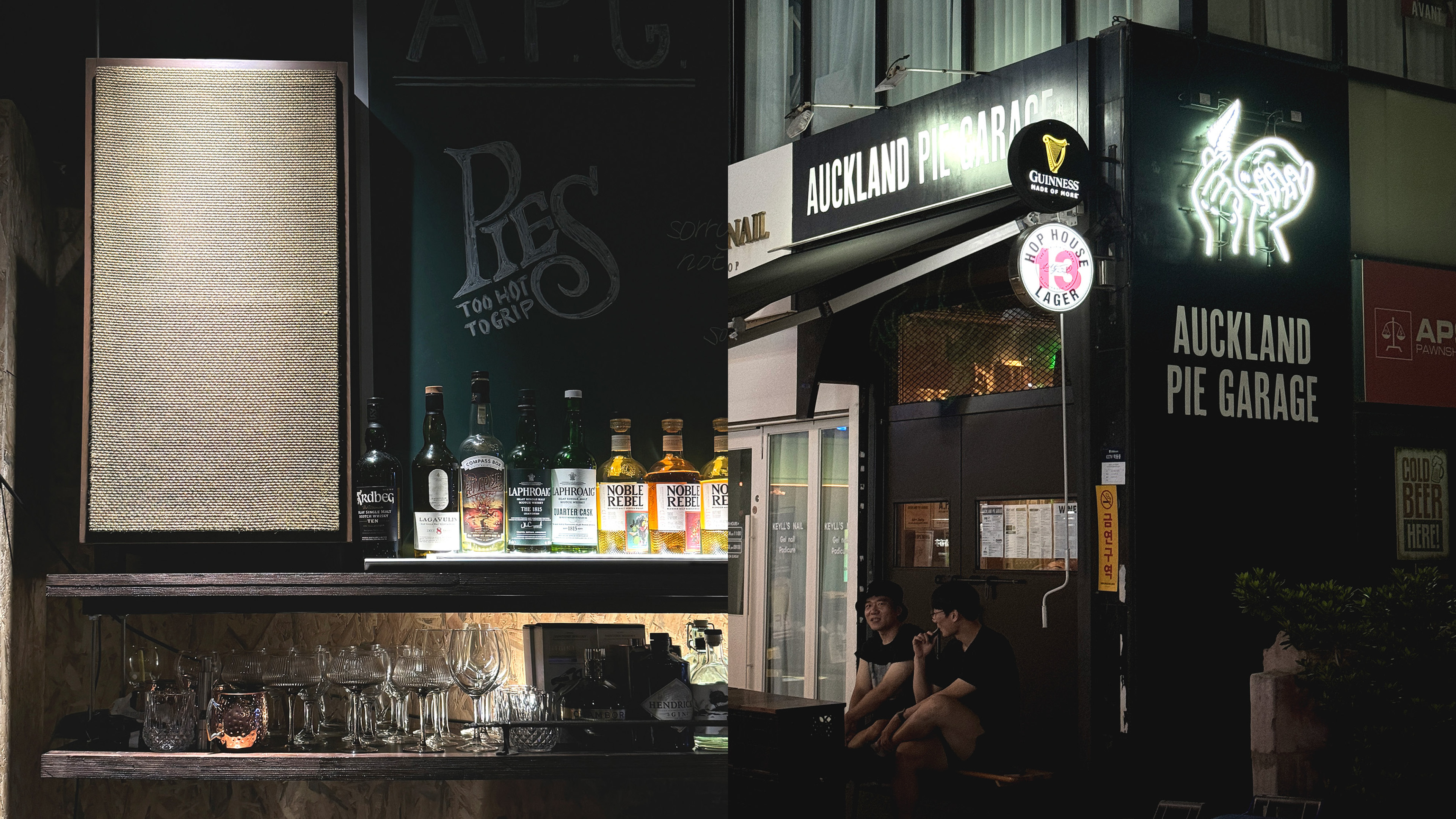 Auckland Pie Garage is a dining pub located in Seoul’s Apgujeong district. It was renovated from a former wine bar and now specializes in serving New Zealand-style pies. The branding reflects the casual and somewhat rustic atmosphere of pubs commonly found in Auckland, bringing an authentic and approachable vibe to the space.