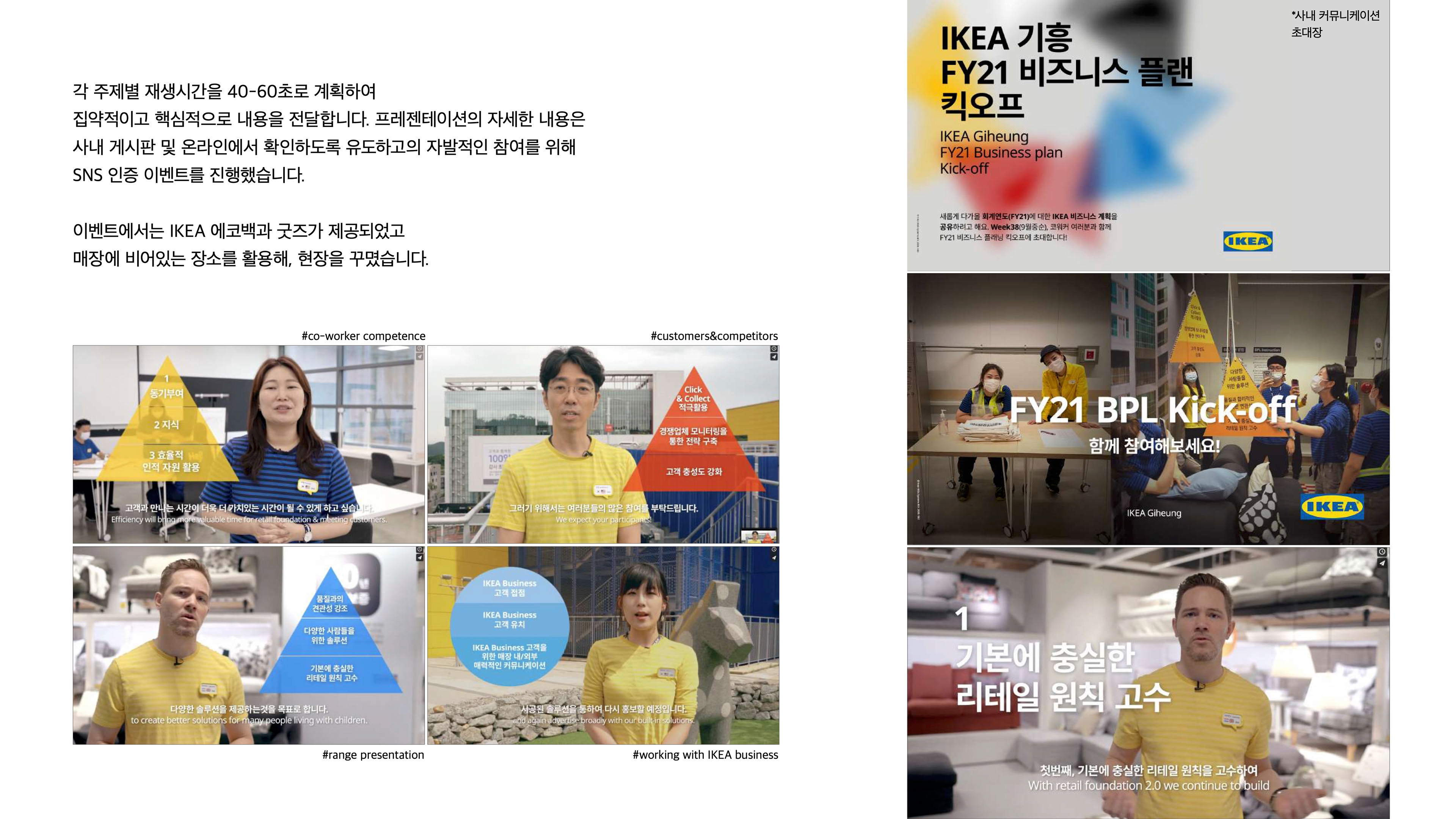 Preliminary tasks such as preparing scripts in line with the IKEA tone of voice and selecting filming locations were taken. After filming and editing, I was also responsible for promoting the video to encourage active participation from employees and contributed to event planning.